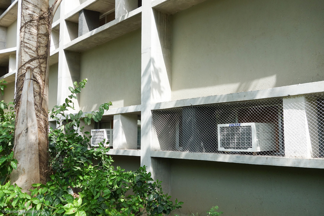 インドでは、本体と室外機が一体型になっているタイプのクーラーを多く見かけます。実際、お店でもまだ売り場の3分の1から半分を占めて売っています。価格は安いのですが(Rs. 20000前後)、窓がひとつ潰れてしまうし、音がうるさいのがマイナスです。下から二番目の写真は、一体タイプの外側です。パナソニックがインドで2010年に独自開発したCubeという製品は、この一体タイプと同価格帯でありながら、室外機を外に出して窓を潰さなくていいというメリットを打ち出した商品です。