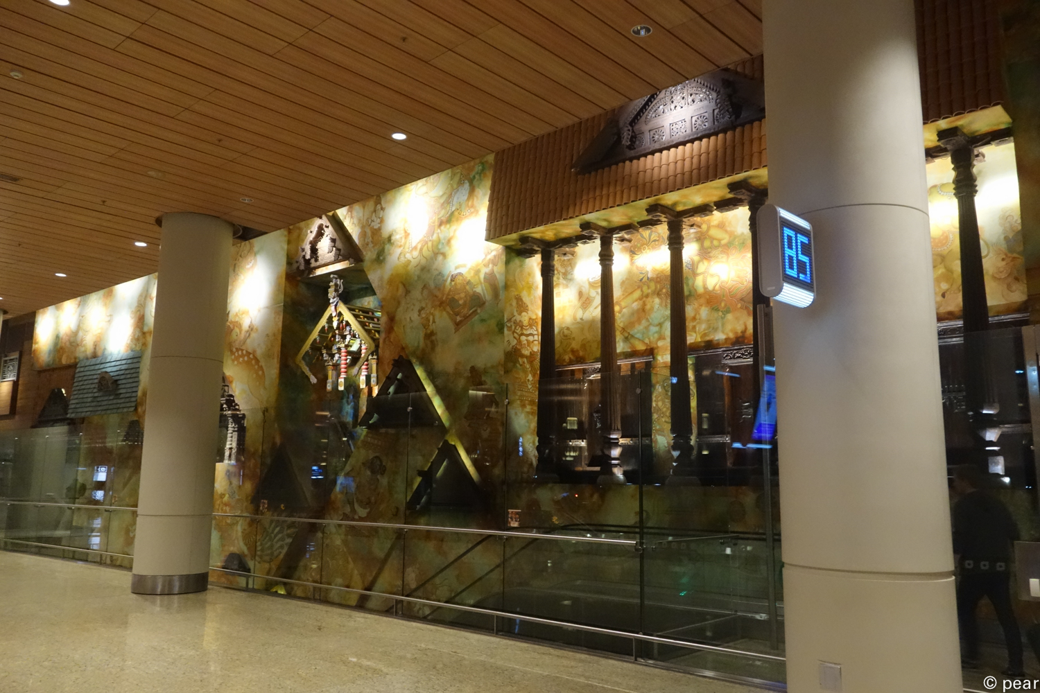 ラウンジは、高級ホテルを思わせる大理石とライティング。また、インドの歴史や民族を題材に多数のインスタレーションが展示されていました。博物館やテーマパークのような雰囲気がそこにはあります。