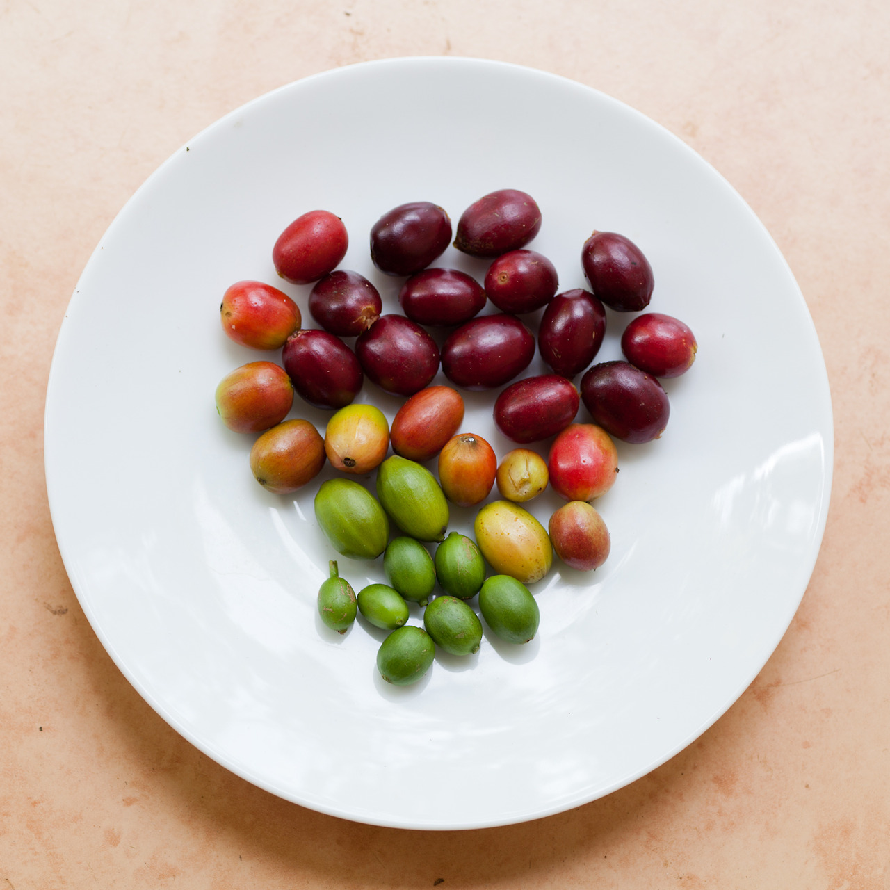 The ripping process is different even in the same branch. The best condition is the upper side red cherry. But these are often cropped before ripping because of some business issues. This process seriously affects the taste.