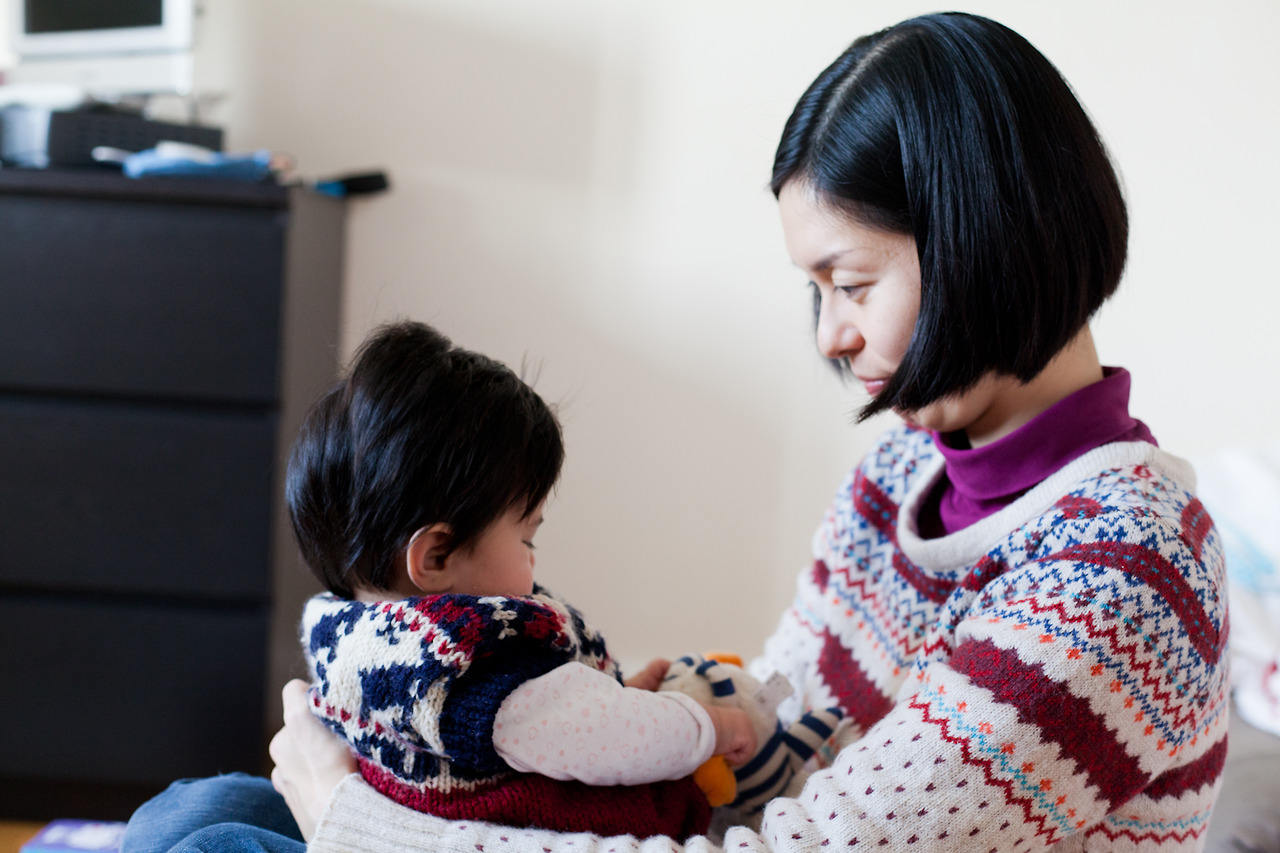 Tomoyo allowed me to photograph her and her 6 months year-old daughter in her place. She was a violinist. Now she is a manager for an orchestra in London.