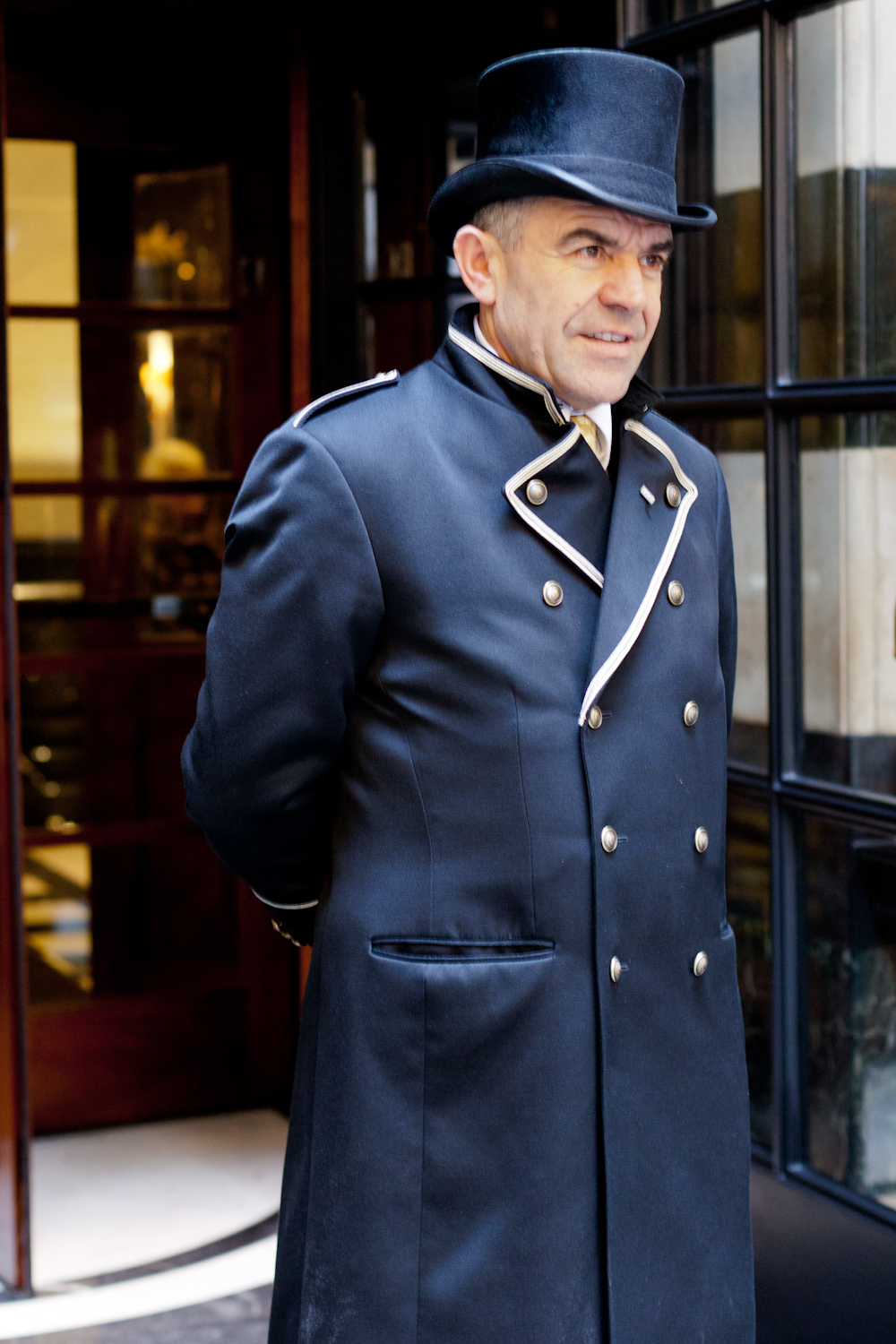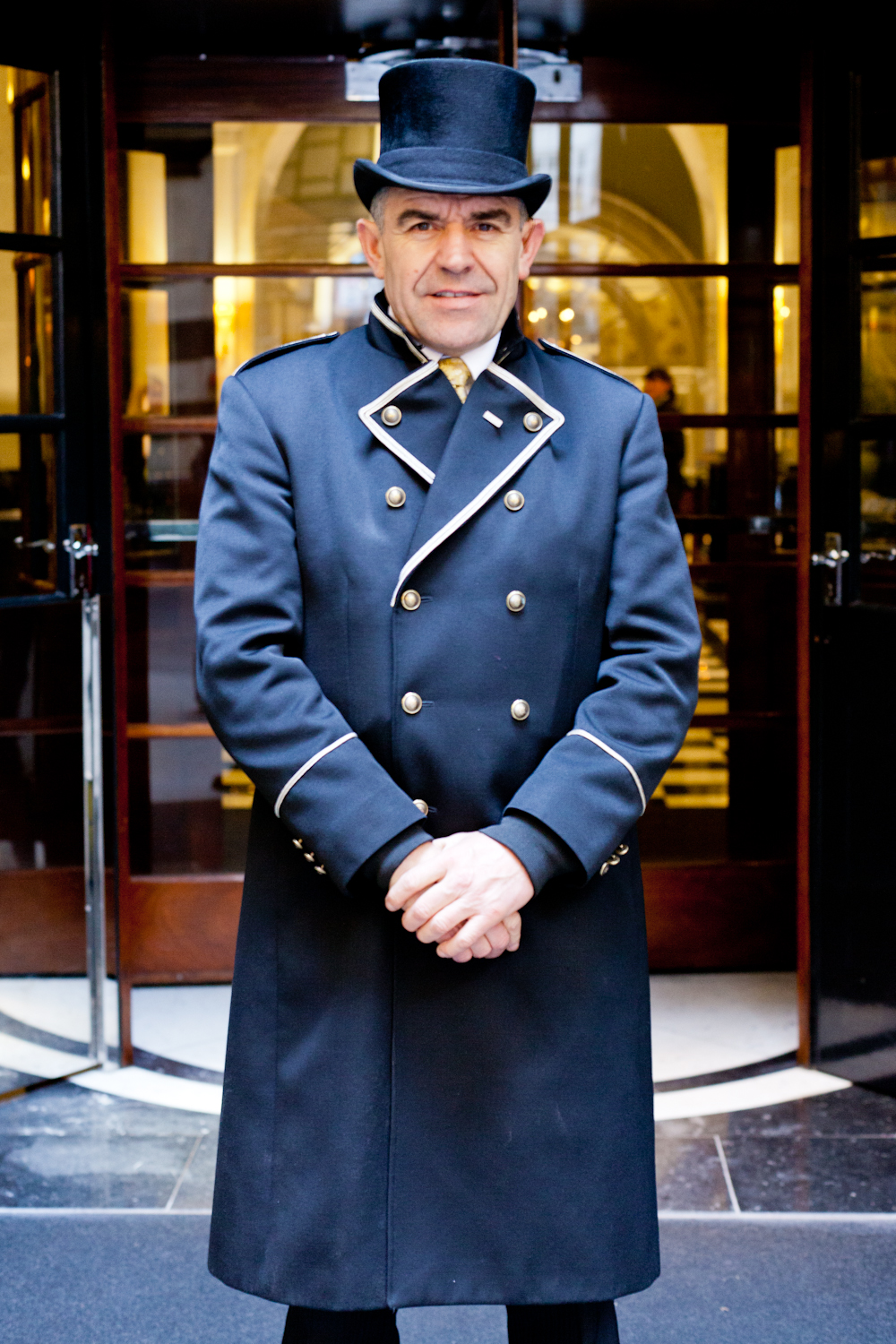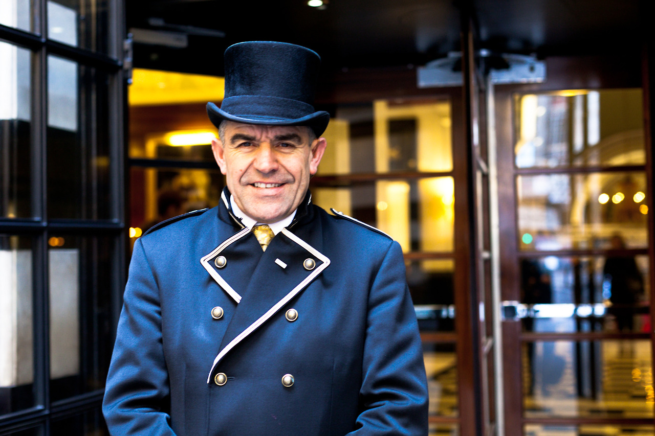 SAVOY HOTEL is one of most luxury hotel in London. The door man, especially the head, has attracted me for a year. Finally, I asked him to photograph in his work place. I could recognise he is a head doorman as his air and confidence without any explanation.He was so professional attitude against me when I asked to photograph in this time. A high standard hospitality and pride starts from the entrance. I hope to become a right person to stay in here in future.