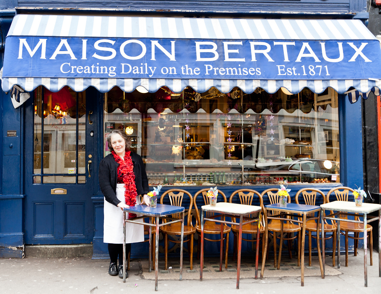 Maison Bertaux, French cafe, was opened in 1871 as her family business. She sometimes helped this cafe when she was teenager. She was an actress in a famous theatre until taking over this cafe. After then, her sister and she work as co-owner. My favorites are a nice coffee and brilliant flower with her hospitality.