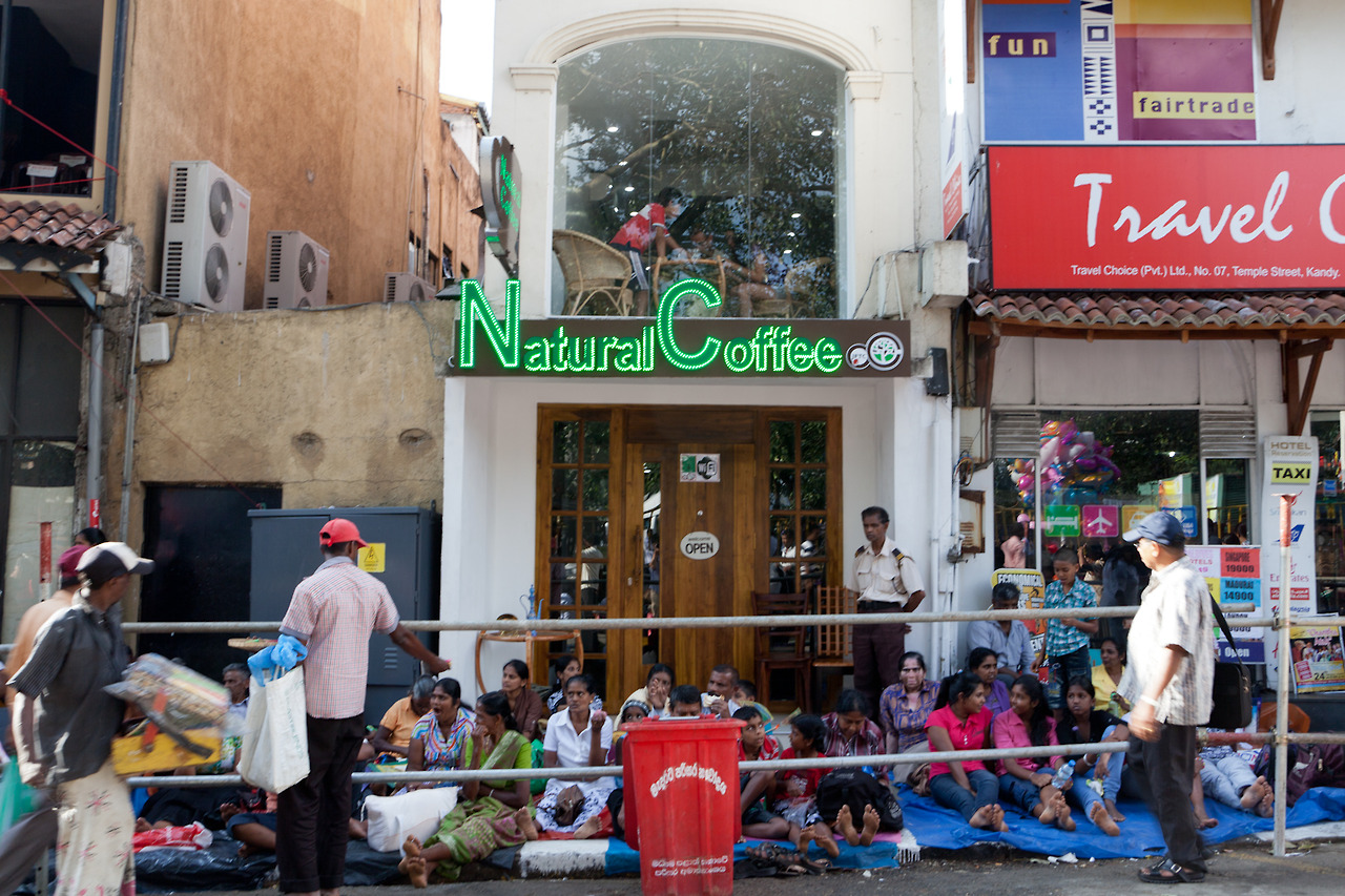 さて、キヤンディではペラヘラ祭り8日目。スリランカだけではなく、世界中から見物客がやってくる。カフェ・ナチュラルコーヒーの前にもたくさんの席取りの人々。警備員がお客さんの通れるスペースを確保も今日はすでに断念。でも、お客さんがなんとか通って入ってきてくれるほど珈琲の味は確かです。