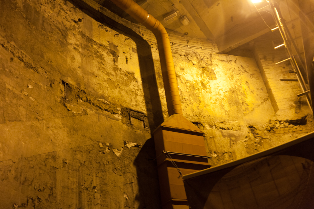 トンネルの入り口は、とっても狭くて潜って5メートル近く階段を降りました。そこにはぽっかりと大きな井戸のような空間が広がっています。ときどき地下鉄がガタゴトと通過する振動がしてきます。すぐとなりにロザハイス駅があるためです。ここからトンネルを掘ったがゆえに、隣に駅があるといった方が正しいでしょうか。